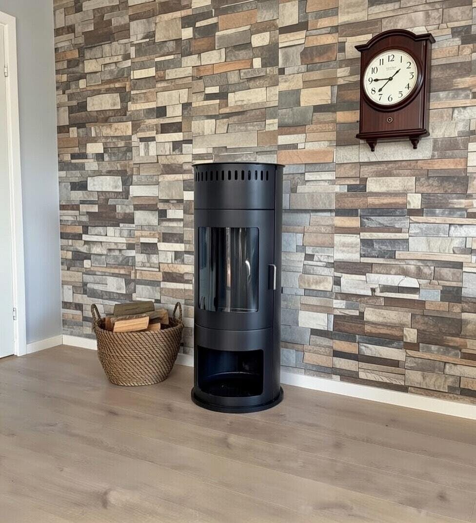 The Washington stove fireplace from ScandiFlames combines the classic look of a wood burner with the modern convenience of bioethanol. Its compact size (H: 112 cm x Ø: 42 cm) makes it a perfect fit for a wide range of interiors.The built-in 1.5-litre burner provides up to 6 hours of burn time and a 2.2 kW heat output, ideal for warming rooms of 25–30 m². Completely chimney-free and electricity-free, this manually operated fireplace is easy to install and simple to use. Enjoy a clean, smoke-free flame that creates a cosy, inviting atmosphere. perfect for relaxing evenings or family time.